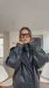 This faux leather jacket is defined by a refined, architectural silhouette with a relaxed, slightly oversized fit that drapes effortlessly on the body. The sculpted high collar adds a sense of structure and quiet drama, while clean panel lines create a polished, intentional finish.